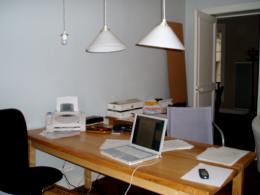 Arrêt 2. Deuxième étage de cette cour, derrière la fenêtre, la petite société de production avec laquelle Fabrice Cazeneuve et moi-même avons pu monter Paysage Fer, que Fabrice projette ce soir à la Scam, malheureusement je n'y serai pas. On pose les ordinateurs en vis-à-vis sur la petite table de bois familière, le projet en cours est mis pendant une heure sous le double regard: mais on sait bien que même à Arte documentaire les temps sont aux nuages. Puis plat de pâtes à l'italien d'en dessous, divagations. Amitié de dix ans.
