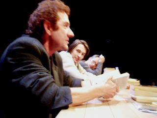 Ça y est, on l'a retrouvé, le frère de sang. Lui, il est venu de Toulon, et Dijon c'est géographiquement à mi distance. La proposition de Philippe Minyana est la suivante: "l'écrivain et sa valise". Chacun est censé amener dans son cartable les livres qui pour lui ont été des transitions ou des "embrayeurs". Cela, je l'ai déjà fait. Mais pas dans le partage, à quatre derrière la même table. La dernière fois, au même lieu, il y a eu Leslie Kaplan avec Yves Ravey, Eugène Durif et Noëlle Renaude. Une cinquantaine de personnes nous ont rejoints dans la salle du théâtre de Bourgogne, dirigé par Robert Cantarella. Avec nous, Denis Lachaud (2 romans chez Actes Sud, mais surtout metteur en scène), et un jeune acteur passé à l'écriture, Frédéric Sonntag. C'est Frédéric qui ouvrira la séance en parlant de sa découverte, et récitant à pleines pages par coeur, le Malte Laurids Brigge de Rilke, qui l'a mené à l'écriture. D'un seul coup, la magie des livres (son vieil exemplaire usé et corné), a remplacé le monde et la ville. Frédéric est né en 1978, nous dira-t-il, les livres magiques sont donc les mêmes à 25 ans de distance (oui, pile une génération). La soirée va durer trois heures, au lieu des deux prévues. Après le magistral enchantement Rilke où nous a entraînés Frédéric Sonntag, la barre est placée très haut. Mais il nous lègue un climat où je me dis que la seule stratégie est d'abandon. J'enchaînerai en parlant de ma découverte de Faulkner, le refus et puis la foudre, puis mon entrée dans Saint-Simon, enfin j'essayerai un hommage à Nathalie Sarraute: les écritures majeures peuvent être devant nous tout auprès et nous, pas assez le savoir. Denis Lachaud terminera la séance en lisant 25 fragments des 25 livres qui, après des études de mathématiques et de pratique assidue de piano classique, lui auront semblé le plus jubilatoire: il nous lira du Duras, du Peter Handke, un extrait de Marie Ndiaye...