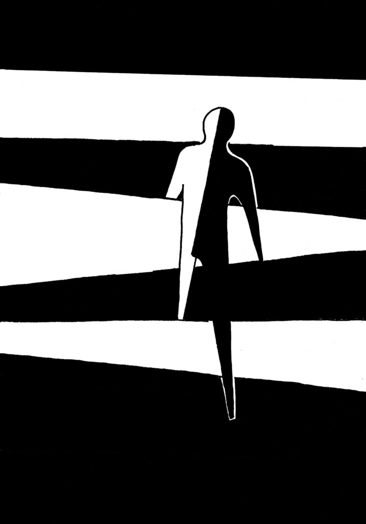 J’étais assis à mon bureau, comme d’habitude, comme tous les jours de la semaine. Mon métier n’est pas spécialement épanouissant mais il a le mérite d’être régulier et stable. Personne ne me chassera de ma place, je suis le seul à décider si je veux la quitter ou pas. Cependant, on m’a prévenu, je n’aurais qu’une seule cartouche : si je pars, ce sera définitif, je ne pourrais plus jamais revenir, d’aucune façon, sous aucun prétexte. L’entreprise me considérera, en substance, comme un traître, quelqu’un d’indésirable, peut être même de méprisable, en tous cas qui n’a plus sa place au sein de la communauté. Il m’en faudra alors trouver une autre, de communauté ou bien apprendre à vivre sans, ce qui paraît terrible. Mais. J’ai quand même ce choix. J’étais assis donc à mon bureau ce matin là. J’avais assez mal dormi, comme d’habitude mais cette fois encore moins bien qu’à l’ordinaire. Des cauchemars m’avaient hantés. Un en particulier : Je rentrais à la maison après une journée de travail et ma femme m’ouvrait la porte. Impossible néanmoins d’entrer. Chaque pas que je faisais me maintenait sur place ou pire m’éloignait d’elle et de la maison, comme si je marchais sur un tapis roulant en sens inversé. De toutes la force de mes muscles et de ma volonté je tentais de m’opposer au cours du tapis mais rien n’y faisait, je restais à cette distance ténue entre l’entrée et la sortie. Ma femme quand à elle ne semblait pas se rendre compte de ma situation. Elle me souriait et attendait que j’entre. J’essayais alors de crier pour attirer son attention mais aucun son ne sortait de ma gorge. Je tendais les bras pour tenter de la toucher mais le bout de mes doigts dépliés au maximum ne parvenait qu’à effleurer l’étoffe de son vêtement. Comme elle continuait de sourire fixement, je la scrutais dans le fond des yeux et je découvrais alors qu’elle n’était pas humaine, qu’il s’agissait d’une machine. La terreur m’envahissait soudain et je m’éveillais. Je fis plusieurs autres cauchemars durant la nuit mais celui ci m’a marqué car je ne suis pas marié. Je n’ai même pas de petit.e ami.e. Bref, ce matin en arrivant au travail, j’étais assez fatigué et perturbé. Je me suis plongé dans mes dossiers ce qui a eu pour effet de me distraire de toutes les fantaisies auxquelles mon esprit s’était livré durant la nuit. Peu à peu, le café aidant, j’ai repris complètement assise en moi même. J’en étais à mon troisième dossier quand mon avant bras droit s’est enfoncé dans le bureau. Enfoncé, comme dans du beurre. J’ai perdu l’équilibre et j’ai failli tomber. Je me suis alors redressé d’un bond, extirpé du bureau et j’ai jeté un œil discret alentours. Mes collègues de l’open space n’avaient rien remarqué, ils étaient toustes à leur besogne et personne ne me prêtait attention. J’étais donc debout devant mon bureau que je regardais. Il s’était refermé et nulle trace ne restait du tour qu’il venait de me jouer. J’entamais le mouvement de me rasseoir et pliais pour ce faire les genoux lorsque je sentis que le sol sous mes pieds s’enfonçait, que mes chaussures y imprimaient leur emprunte. J’eus peur alors que, tout comme le bureau, le sol n’essaye de m’absorber et je m’arrachai violemment à la situation en sautant d’un pied sur l’autre. Durant le temps que j’étais en action, mes pieds se maintenaient en surface du sol mais dès que je m’immobilisais, le sol m’aspirait à nouveau. Je me sentis en danger. Je compris que j’étais confronté à une situation de vie ou de mort et sans plus réfléchir je m’élançais. De mes bras j’écartais les obstacles sur mon passage: corbeilles à papiers, chaises sur roulettes, chariots à dossier. Dans un bruit d’apocalypse métallique, les étagères s’écroulaient sur mon passage Dans mon élan, je fonçai dans la vitre séparant les box de travail et en traversai un puis un second , un troisième. Tous les collègues s’étaient levés. Pétrifiés, ils assistaient à ce prodige : Un homme qui perçait la matière, qui la traversait. J’avais transpercé à peu près tout l’open space quand le responsable du service se plaça en travers de ma route pour tenter de me contenir. J’hésitais un instant mais mes pieds commencèrent à s’enfoncer aussitôt dans le sol. Alors d’un pas décidé, je le traversai aussi et me retrouvai de l’autre côté de lui. J’avais éprouvé une sensation froide au contact de sa matière, comme de plonger une main dans une gélatine froide. Je pivotai sur moi même pour faire face aux visages médusés des employés de l’entreprise. Je sus à leur regard que plus jamais je ne ferais partie de leur communauté et, dans le même temps, je sentis mes chaussures s’enfoncer dans le sol. Je leur tournais alors le dos et me retrouvais face à un mur de briques. Sans hésiter mais le cœur battant je me dirigeai droit sur lui bras tendus vers l’avant. Au contact de la brique, mes doigts se replièrent comme des pelles et se mirent à creuser. Avec des grands mouvements, d’avant vers l’arrière, comme un nageur de crawl qui aurait nagé debout, j’expulsais les briques vers l’arrière, éprouvant une jubilation secrète, je l’avoue, à m’imaginer cette pluie inattendue sur le chef de service, là bas derrière, dans l’open space saccagé. De l’autre côté du mur, passait en colimaçon, un tronçon de l’escalier de service. Je le descendis à toute vitesse, la main gauche glissant sur la rampe puis, arrivé au rez de chaussée, traversai une porte de fer et me retrouvais dehors, sur le trottoir de la rue principal. Il faisait grand soleil. Je me sentis, d’un coup, extrêmement joyeux et j’avais faim. Je sautillais d’un pied sur l’autre, le temps de réfléchir à ma nouvelle situation. Ma joie retomba. Qu’al
