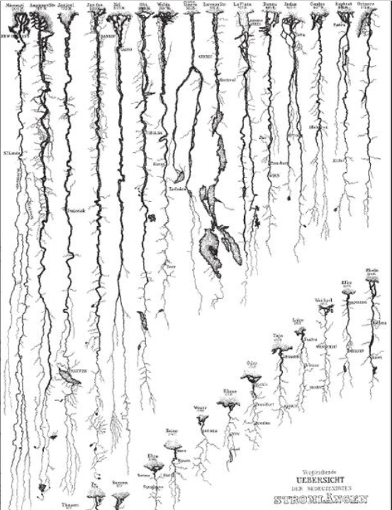 Personne d’autre que moi n’aurait remarqué la fente qui court de plus en plus vite sur le carrelage. Personne n’y aurait prêté attention. Mais maintenant je l’ai vue. D’abord courte, elle a sillonné la carte des carreaux puis d’autres sont apparues. Les temps sont secs et les tensions dures. Les températures montent et les cours d’eau descendent dans les vallées. La carte des stromlängen s’étale à présent parterre, depuis la porte-fenêtre où les fleuves prennent leur source. Ils passent ensuite sous la table, rattrapés par tout un réseau de rivières et de ruisseaux. Par endroits, les trais sont justes esquissés, à peine ombrés ; à d’autres, ils creusent le grès. Ils prennent des directions inquiétantes. Marchant entre l’Oder et le Rhône, j’approche du Saint-Laurent et ne suis plus très loin de l’Amazone ni du Missouri. A ce stade, les fentes auront rejoint l’évier et je me déplacerai entre rive droite et rive gauche, au bord de failles sismiques. Le sol s’éventrera peut-être.