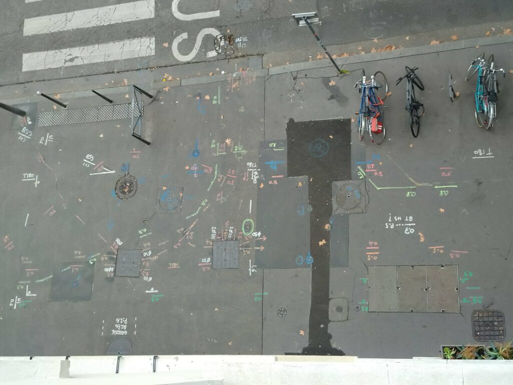 fractures urbaines partition de bitume brouhaha artère béante circulation ininterrompue souterraine et aérienne des hommes dans tous les interstices de la ville le trottoir livre énigmes