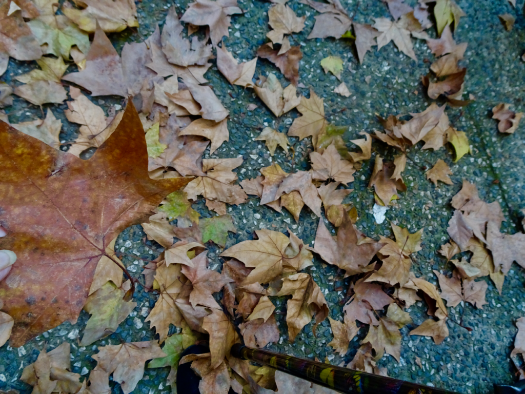 Un petit acte modifiant un tantinet le monde | perplexité | immobile dans la rue, mesurer son importance à celle du monde ou de la rue | les yeux sur un petit tas de feuilles mortes abandonné par le balayeur penser dire NON au monde | aimer assez la futilité de cette déclaration et pour assumer cette futile présence au monde mais la marquer choisir une feuille rousse, la garder dans la main qui ne tient pas la canne, faire quelques pas, la poser sur un tas un peu plus grand.