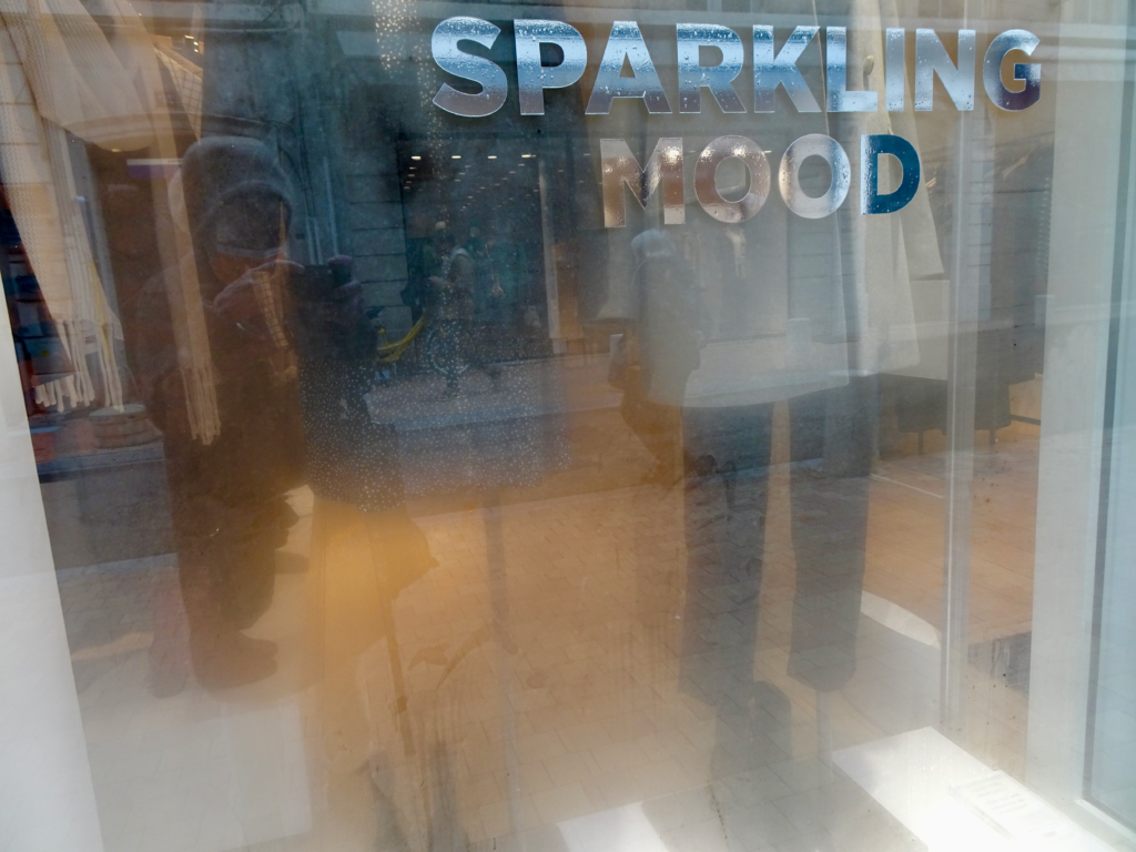 Sortie de la blancheur nette et de la chaleur de la douche ignorer mon visage qui ne trouve pas place sur le miroir brumeux | un tapis de feuilles ocres et brunes sur les dalles en un camaïeu indistinct d’où se détachent deux grandes rose et rouge | dans la blanche lumière froide le dessin du fronton de la Comédie mais à l’arrière dans un lointain humide la tour de l’horloge comme un fantôme | vitrine chamarrée d’un local vide, celle du suivant chauffé se cache sous la buée.