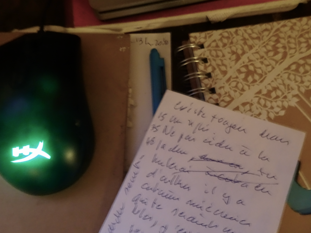 13 11 – Ai-je dit « je ne veux pas » ? ou l’ai-je juste pensé, je ne sais jamais vraiment si je dis ou non quand suis seule, en public je contrôle à peu près, pas tout à fait mais tout de même, ou dans la rue quoique là il m’arrive de ne pas bloquer ce qui se forme, pour aller avec mon apparence, par malice, non j’ai sans doute grogné en tendant le bras pour allumer, ça revient au même que « je ne veux pas », alors comme je suis dans le jour maintenant je dis « va petit soldat ».