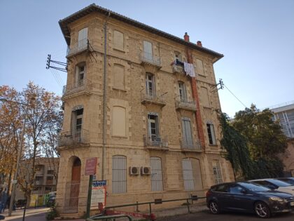 Et puis, où déjà la ruelle s’apprête à rejoindre le grand boulevard, il surgit, à l’angle de deux rues modestes, se présente à moi dans toute son étrangeté sans que je puisse y mettre dessus un seul mot. Je sors mon portable, une série de dix prises ne réussit pas à l’enfermer dans la boite.