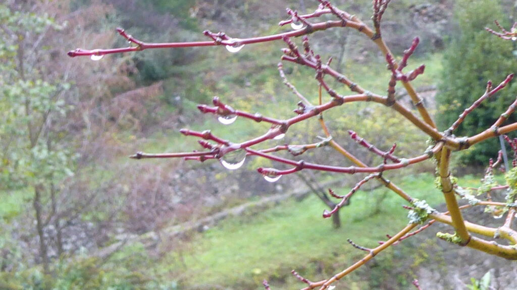 cette journée qui a commencé ressemble à celle d’hier, même ciel, même immobilité des aulnes, même flux doux de rivière alimenté par la pluie menue et continue, je tourne la tête vers la fenêtre, sans doute que dans ce dépli du temps ordonné par le déplacement du regard et par la rotation de la terre, personne d’autre que moi n’aurait remarqué le léger fléchissement de la couleur vers le jaune et le roux depuis hier, le tapis de feuilles au sol plus épais, le frémissement plus appuyé de l’eau, la vitalité plus criante des lichens griffant les branches du grand cerisier touché par l’âge, sans doute que personne d’autre que moi n’aurait remarqué l’air ragaillardi des fougères dans leur pot écaillé, le glissant des marches d’escalier (souvenir d’os rompus), les odeurs de terreau en fabrication, le rouge de l’érable en attente, toutes ces choses libres de vivre et sauvages qui frappent là au détour de l’instant, ouvrant le champ infini du réel bien loin de soi, le vivant si puissant tout autour qui bouleverse