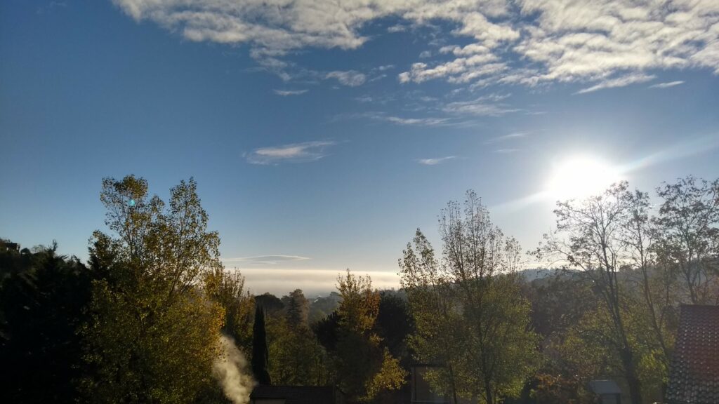 Le jour décline et j’observe, allongé sur le bain de soleil de la terrasse de la gare TGV d’Aix, les nuages filandreux qui s’agglutinent, s’épaississent noirs au-dessus du massif montagneux et qui, soudain trop pleins, crèvent et dégoulinent en gouttes épaisses sur la pergola et le bitume du parking. S’élève alors du sol rafraîchi le parfum caractéristique de la route mouillée par l’averse et celui-ci se mêle à la chaleur douceâtre d’un mois de novembre devenu tropical.