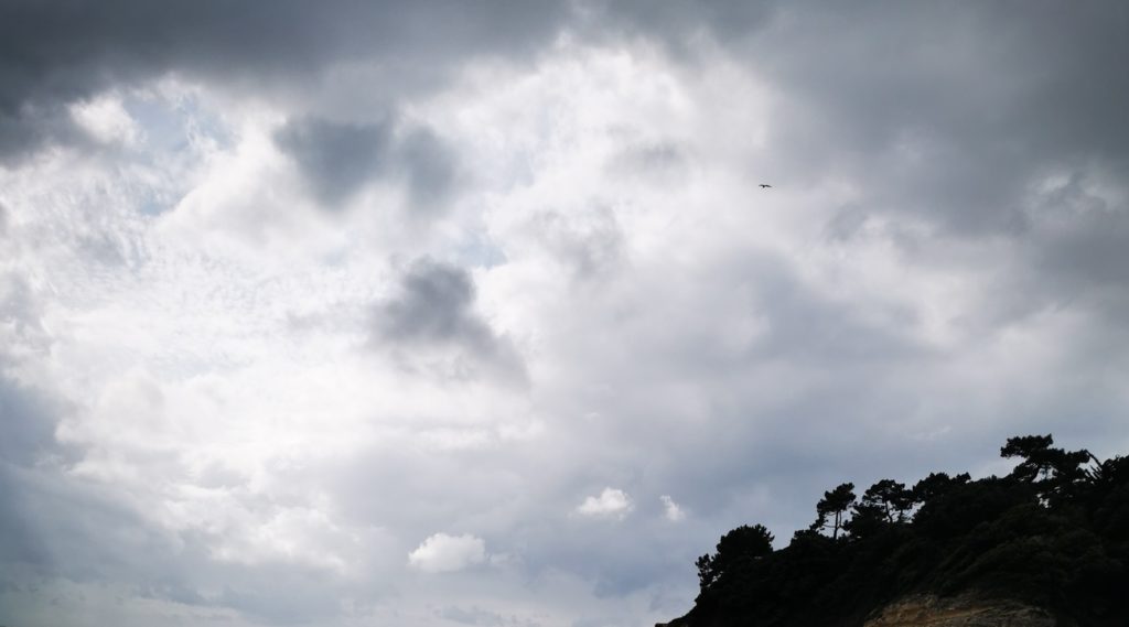 Lorsque les nuages sont vagues désordonnées de gris, que la terre est détrempée en fin d’après-midi, le paysage observe comme une rotation et c’est le ciel qui domine. Le gris foncé vire au noir chargé des eaux qui viendront le soir et de l’Est. Des bandes vaporeuses en gris clair viennent caresser les verts du pré. Vert mouillé épais gourmand à faire festin pour celles dont la présence se signale au paysage par de longs meuglements. Vert d’eau claire, des lentilles à la surface de la mare font croire à une main impressionniste qui aurait composé le décor. Du gris irisé de soleil vient comme aquarelle jouer sur la profondeur des cieux. L’architecture du ciel concurrence l’ordonnancement des choses terrestres. Le gris règne en maître, pèse et aplatit ce petit monde.