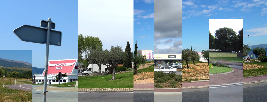 Il avance dans ces rues aux noms inconnus qui déplient des façades toutes différentes de couleur grise à ocre jaune et rouge clair, des façades qui se regardent et ne s’aiment pas pour avoir été abandonnées, écroulées, rafistolées, mutilées, d’anciennes architectures qui bataillent ou voudraient encore batailler face à des petits immeubles à la peinture fraîche modélisés sur des plans en trois dimensions d’un cabinet d’architecte qui a réfléchi aux matériaux innovants pouvant offrir plus de surface de terrasse et de transparence à l’intérieur des appartements, il se dit je préfère cent fois les lieux de vie avec leur charme ancien qui ont vécu, et il ne comprend pas comment on peut se dire oui je vais habiter ici derrière ces constructions neuves pour ces terrasses à l’ombre avec ces grandes baies vitrées. Plus loin la rue perd ses façades et laisse place à des parkings où quelques platanes déploient leurs ombres, puis de parkings en squares il passe devant un monument aux morts pour la patrie avec sa Victoire les bras en l’air ordonnant par son mouvement d’élever quelque chose, ces logements sociaux justes en face, tous identiques, peu nombreux mais désespérants, au bord de la vétusté, construits à la fin des années cinquante, des logements qui font détourner le regard, alors il presse un peu le pas comme si ce n’était pas pour lui, comme si le logement social ça pouvait s’attraper comme une maladie honteuse, alors il s’écoute marmonner c’est moche ces blocs de dix étages dénudés sans aucun arbre autour, pourquoi ne pas les détruire et reconstruire moins haut et végétaliser toute cette zone, il laisse derrière lui ce qui lui semble être toute la pauvreté du monde puisqu’il a détourné le regard tout ce qui ne persiste pas devant lui n’existe plus, tout s’estompe avec la distance, de toute façon il doit avancer, une tâche verte se rapproche indéterminée qui forme des volutes épaisses et harmonieuses aux reflets luisants dessus, il se rapproche d’une arche de pins, il peut ralentir, l’îlot résidentiel ressemble à ses idéaux plus par conformisme familial que par conviction personnelle, s’autorisant à regarder par-dessus les haies de lauriers où les pins se déploient des jardins d’habitation jusque sur les trottoirs des rues, puis tel un mirage s’effaçant en avançant, les pins peu à peu disparaissent, et regardant tout droit vers le puits de lumière qui ruisselle, il ralentit encore profitant de l’ombre devant cette maison de maître très haute à trois étages, sa porte cochère de la taille d’une charrette, sa génoise à trois rangs, son balcon en pierre au deuxième étage au pied de la fenêtre du milieu. Il remarque que les lampadaires ont doublé de taille et les trottoirs ne persistent plus au-delà de quelques centaines de mètres pour s’évanouir en accotements incertains. À marcher sur le rebord de la route où midi laisse des ombres courtes au sol, il se fatigue à progresser alternativement sur des couloirs de bitume, des chemins de poussières fines dans lesquelles s’égrènent des cailloux enduits de goudron qu’il sent sous les baskets, cherchant son rythme de croisière de longue distance, il doit fouler encore tous ces bas-côtés où la chaussée et l’accotement se chevauchent de manière inégale où il pense je pourrais me fouler la cheville, car j’ai déjà très mal aux pieds. Il reste à franchir encore ces zones étendues de sortie de ville qui enchaînent les ronds-points. Un rond-point en voiture ça ne dure qu’un instant, se dit-il, même si les plus incertains s’engagent timidement et les conducteurs plus téméraires franchissent diamétralement les deux voies pour sortir te rasant de près sans s’arrêter. Il considère désormais qu’à pied il faut bien plusieurs minutes pour contourner ces giratoires, prudemment sur les passages piétons pour machinalement se voir acquiescer devant le panneau indiquant le bon embranchement vers sa destination. Il n’a croisé vraiment personne depuis qu’il cherche à sortir de la ville, suivant la signalisation, reconnaissant à peu près tous les panneaux qui se présentent depuis que j’ai pris ces heures de code de la route et de conduite.