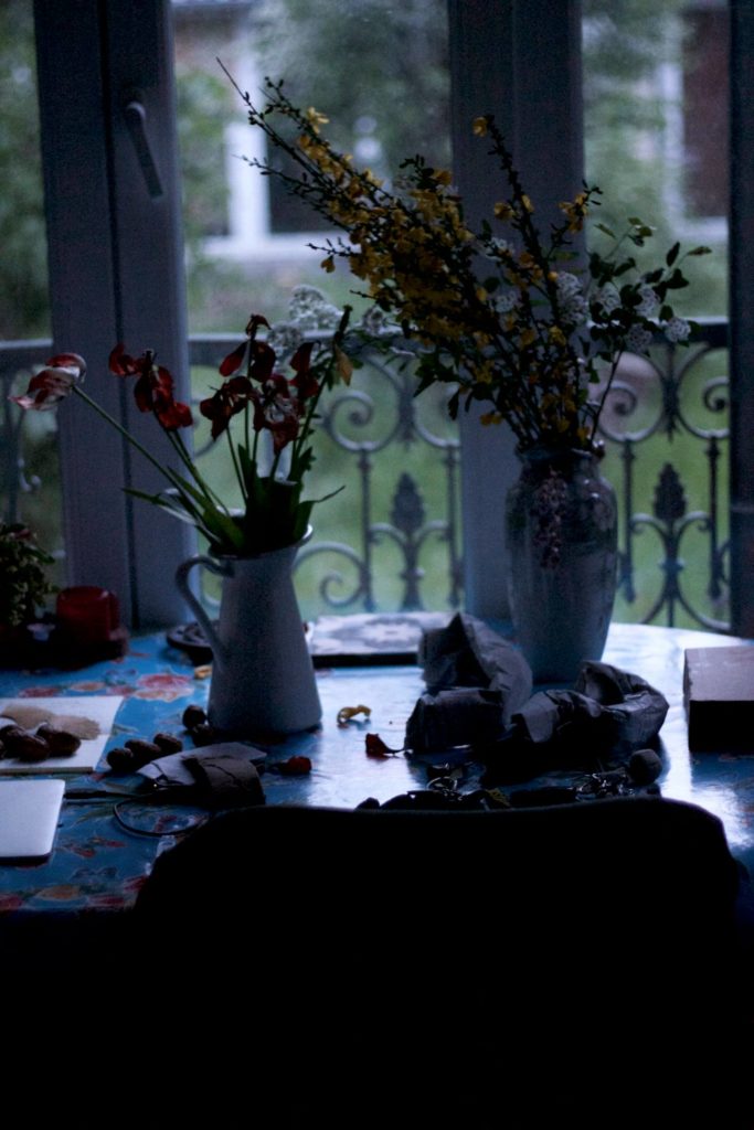 Emma Goldman, qui n’était pas la moitié d’une féministe anarchiste disait qu’elle préférait avoir des roses sur sa table que des diamants autour de son cou. J’ai toujours aimé cette phrase indubitable. D’autant qu’elle me rappelle les quelques 40 années où j’ai pu voir mon grand-père se faire le jardinier de son épouse, lui rapportant de son potager où il faisait pousser pour elle des roses et des lys, des spécimens pleins de vigueur rustique, bien éloignés de ceux qu’on m’offre les bons jours après une représentation. Cet usage familial se confondant dès les premiers tours de mange-disques avec les us et coutumes de la planète du Petit Prince de Saint Ex. La richesse sans borne de posséder un jardin ou d’y avoir accès et d’aimer quelqu’un. La Bête de la Belle aussi connaît bien cette double nécessité de la fortune. Quand je rentre de voyage, tout à l’heure, dans un vase, il y a des roses du jardin. Je les prends très personnellement.