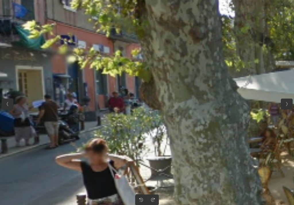 les platanes de la place (probablement Pascal Paoli) à l’Île Rousse – vacances soixante-douze – pastis et essence (pratiquement) donné.es