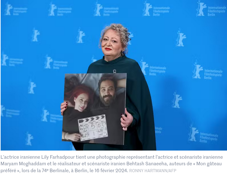 et une troisième, l’héroïne du film (Lily Farhadpour) présente leur photo à la Berlinale 2024 (où le film obtient le prix Fipresci de la critique)