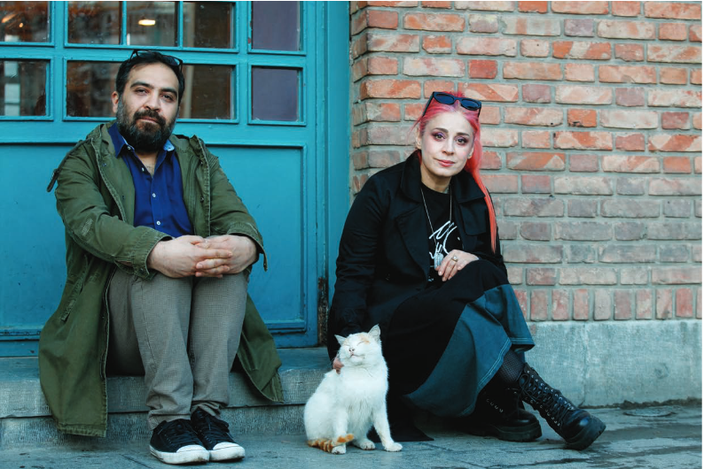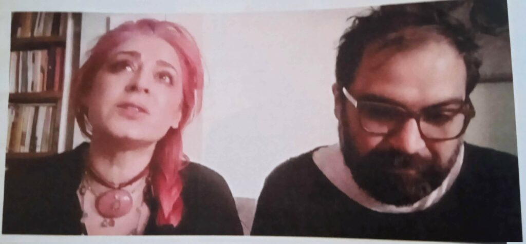 en tout cas hier au ciné passait le Mon gâteau préféré (My favorite cake – 2024) réalisé par un couple (dans la vie, je ne sais) : Maryam Moqadam et Behtash Sanaeeha, un film iranien produit en Suède et en Europe – mettant en images et scène deux vieux personnages, la veuve et le divorcé – elle jette (plus ou moins) son dévolu sur lui, l’invite chez elle (il s’arrête pour acheter des médicaments avant d’arriver à la maison), à boire du vin, manger des feuilles de vigne farcies, à danser (les médicaments en question sont au nombre de 4, de petites pilules bleues, il en prendra une taleur) – il répare la lumière défaillante de la cour/jardin de la maison (la dame vit en rez-de-chaussée) ils boivent ensemble dansent ensemble – et puis et puis… Mais avant ça, la dame se promène dans un parc et aide des jeunes filles à échapper à la police des mœurs en s’y opposant tout simplement (le film a été, me dit-on, tourné avant le meurtre de Mahsa Amini) – un beau courage. Une belle histoire, un peu triste certainement. Une espèce de conte – le type conduit un taxi (comme Jafar Panahi), tout à coup il se met à pleuvoir – ça se passe à Téhéran. À ce moment-là, ou juste avant, il indique qu’un hôtel qui s’appelait Hyatt dans le temps s’appelle aujourd’hui Liberté – et elle quoi, c’est ça la liberté ? Formidable. Un seul reproche : l’avant dernier plan, pourquoi n’avoir pas demandé au type de replier sur elle son bras droit ? Dommage. Dommage. Un bien beau film. Ici une image de ces deux réalisateurs iraniens, qui attendent d’être jugés pour propos séditieux (ce monde est une horreur – et jte parle même pas de l’Afghanistan et le sort fait aux femmes là-bas non plus que du monde « libre » comme ils disaient) : ils refusent l’exil…