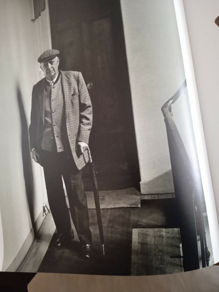 Brassaï, à carreaux, pseudonyme de Gyula Halász (l’image est d’Helmut Newton – la légende indique « Brassaï devant chez lui » – il ne semble pas y avoir d’ascenseur qu’est-ce t’en penses ? mais du tapis en feutrine quand même…) Une autre du même tonneau