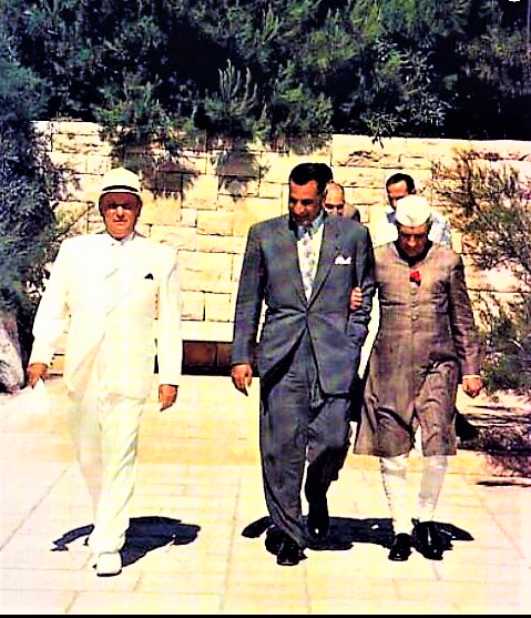 une autre image pour le plaisir de retourner dans ces années d’enfance où on ne savait trop ce qui se tramait, mais on en sentait les effets sur les adultes (en blanc le maréchal (yeah !) Tito; en gris pochette costard Gamal Abdel Nasser; à la rose Jawaharlal Nehru) (il se peut que cette image vienne de Bandung)