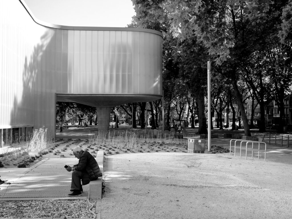 Singulier. Il y a un tout petit quelque chose qui me rappelle Errance de Depardon, les photographies très graphiques et le ton distancié. J’ai cru voir en regardant ce caillebotis, la vue aérienne d’une foule, avant de comprendre qu’il s’agissait de feuilles mortes.