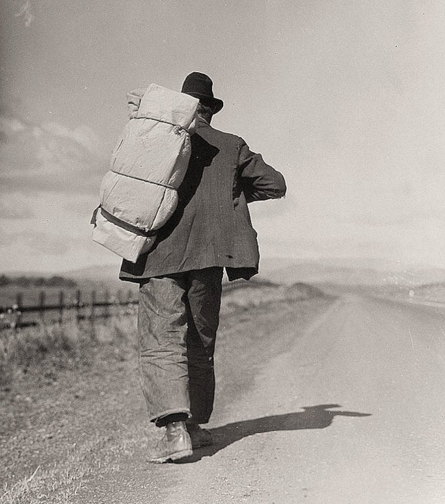 Soir. Il est à l’abri dans la grange, il écoute la rage du ciel. Il frotte ses genoux avec ses paumes, genoux aux articulations endolories par sa longue marche tout en mâchonnant un brin de paille. Il ne parvient pas à rétablir l’emploi du temps de ses derniers jours, les heures fuient sa mémoire. Les événements qui lui ont fait prendre la route se sont en partie déformés, estompés, en tout cas ont perdu une part de leur importance. Il se concentre sur la veille, le jour le plus proche du maintenant, souvenirs prégnants et même vigoureux. Il examine son baluchon défait près de la couche qu’il s’est fabriquée avec de la paille et une vieille couverture. Ses affaires sont disposées les unes à côté des autres comme s’il allait rester longtemps : chemise mal pliée, chaussettes, culottes, morceau de savon, pipe et paquet de tabac, petit carnet et bout de crayon à tailler, journal avec des plantes glissées entre les pages comme un herbier, autres petites choses encore. Il s’empare du carnet à la couverture en toile de jute, l’ouvre. Une photo est rangée dedans. Il la prend, la déplie, la regarde longuement. La photo ravive chez lui le sentiment d’un monde lointain, évanoui, perdu. Son état de solitude s’en trouve renforcé quand il la replie et la range.