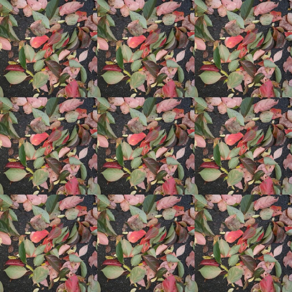 #13 | arrêter le monde | alignement fugace phares blancs trottoir rouge pâle ocre vert ça claque ça chance ça traîne chaîne et poussette ça siffle vole le ciel les nuages les avions envol passe son chemin ça crisse le silence sous le ciel pâle tapis feuilles d’automne