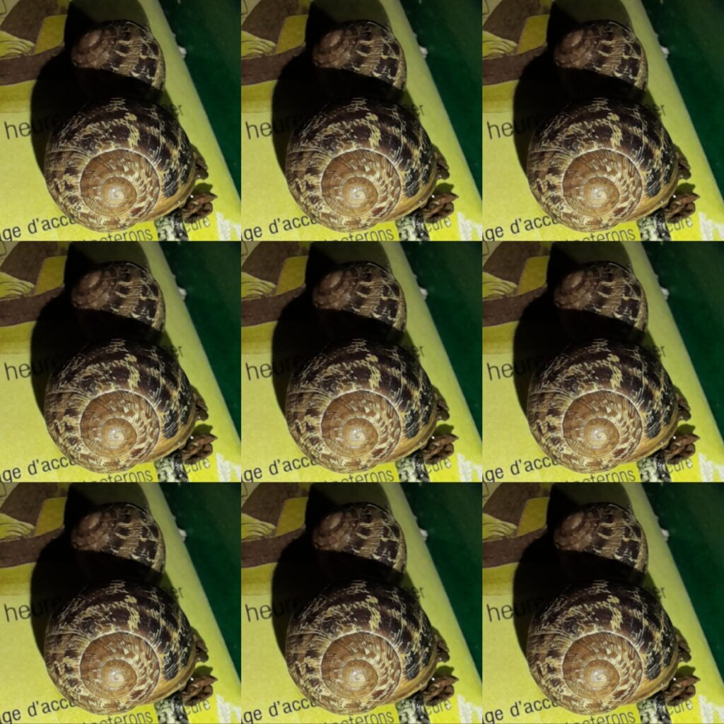 #01 | de l’imprévu | Il glisse vers le haut de la baie vitrée. L’escargot part en escapade sous les tuiles, millimètre après millimètre. Il va seul vers le repère des araignées. Que pense-t-il y trouver ?