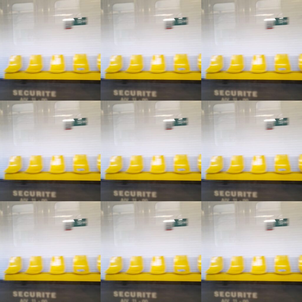 #24 | attente | Ressentir l’urgence du temps, son écoulement, sa disparition, retenir dans la gorge une angoisse, crisper les mâchoires, vouloir pleurer, sur soi, contre soi, contre l’idée qui a mené là, d’être là, balancer, une jambe puis l’autre, ne plus bouger, les yeux fixes, perdus à la poursuite d’une persévérance ou du silence.