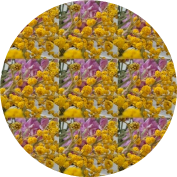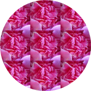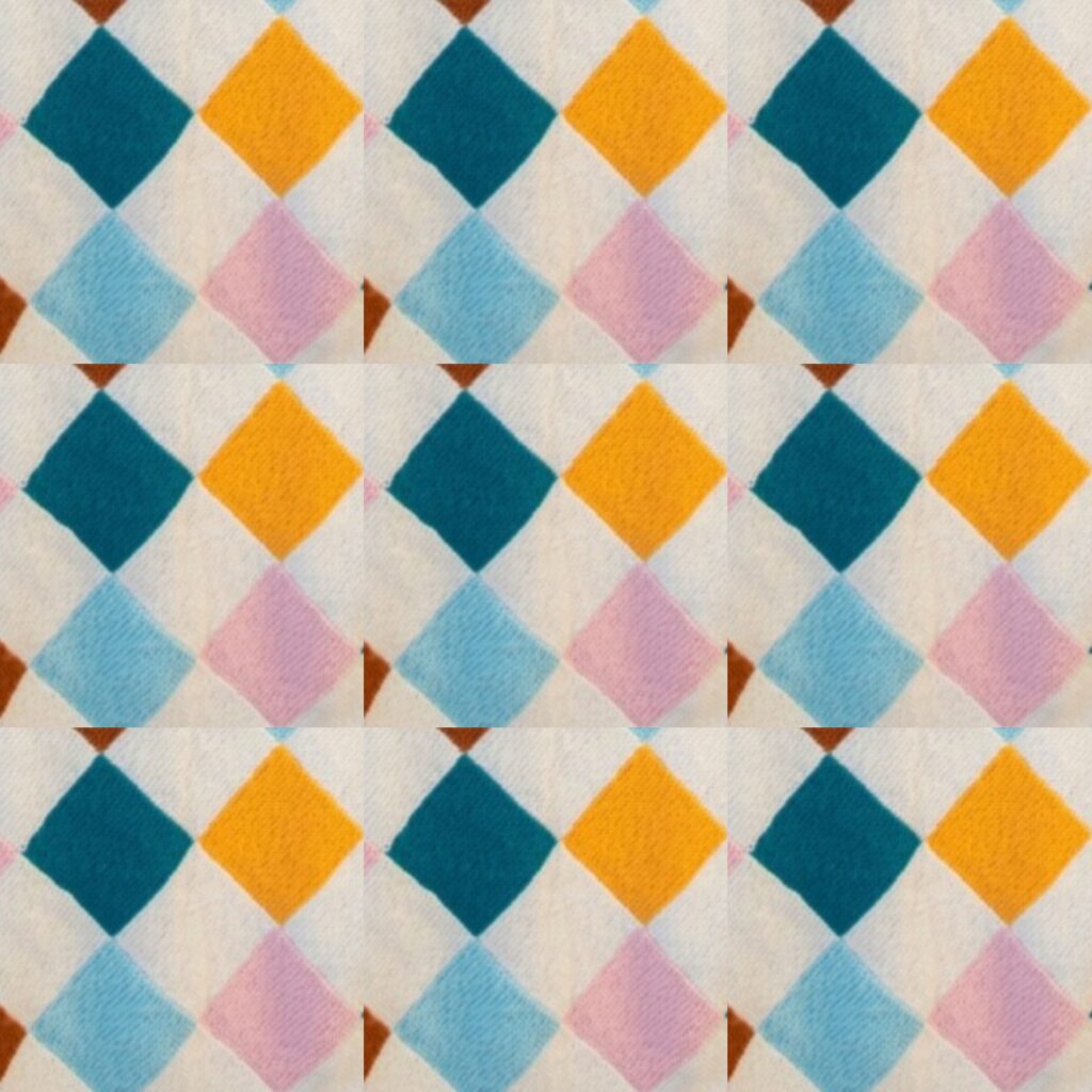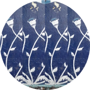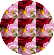 bleu outremer, rose, jaune clair