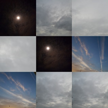 #05 | ciels | 06 :47 Un voile ouaté dissimule une myriade d’étoiles ou un univers sans fond. 07 :59 Une flottille de lignes claires et épaisses. Dragons des airs volant vers les cimes. 13 :49 Autour de l’astre flamboyant, l’étau se resserre, boulier moelleux liant les gris du monde. 15 :04 Se déverse, éperdument, une fraîcheur veloutée pointillant l’horizon. 16h43 L’échappée se fait vers les Corbières, ruée en clair-obscur vibrant au vent du soir.