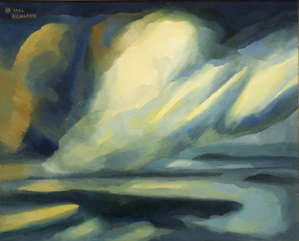 Je veux saisir Richarme là, à cet instant précis où elle entre dans l’atelier, où elle veut oublier le temps, ou plutôt se glisser à l’intérieur de lui pour se battre un jour encore avec les formes et les couleurs de lac et de ciel. Elle aime les lacs et les ciels et la grande mer où elle nage avec délectation. Elle ira jusqu’au bout. Elle tiendra même si chaque toile lui réclame des semaines de lutte avant de se laisser conquérir, même si elle joue des coudes pour se faire une place parmi les hommes du monde de la peinture. Elle s’acharne. De tout son être elle s’acharne. Tout à l’heure elle allumera une cigarette et chantonnera en descendant l’escalier, ce sera vers les cinq heures. Rien qu’à entendre la façon qu’elle aura de descendre et de chanter, ses filles penseront : Tiens, maman est contente de son travail aujourd’hui. Pour le moment elle est seule, inaccessible, et elle peint — sa manière à elle d’habiller l’absence, d’échapper à l’oubli.