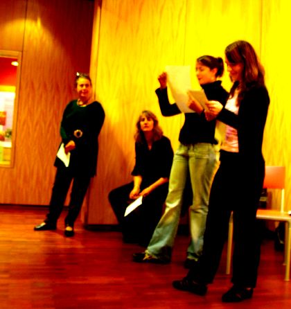 Nassima et Delphine se sont simplement mises derrière la vitrine de la bibliothèque, et ont écrit simultanément. Mais ce n’est qu’au moment de lire ensemble que chacune a découvert le texte de l’autre.