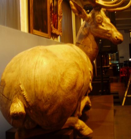 Avec Dominique Pifarély, nous sommes dès 14 heures au musée du Temps. Un lieu magnifique, et le sonorisateur, Guy Pothier, m’a installé un micro Sennheiser MD 441 qui a au moins 20 ans d’âge : pas de lecture réussie sans micro à la hauteur. Tout comme ce magnifique cerf sculpté garde depuis plus de cinq cents ans les incises du couteau à bois.