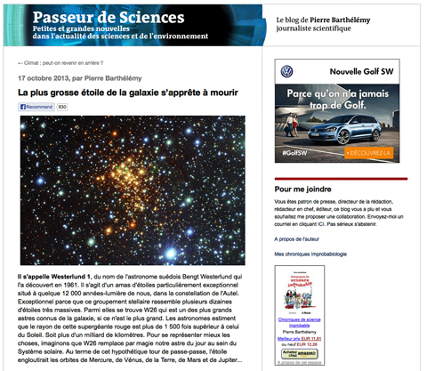 "la plus grosse étoile de la galaxie s’apprête à mourir" – source : blog Passeur de Sciences