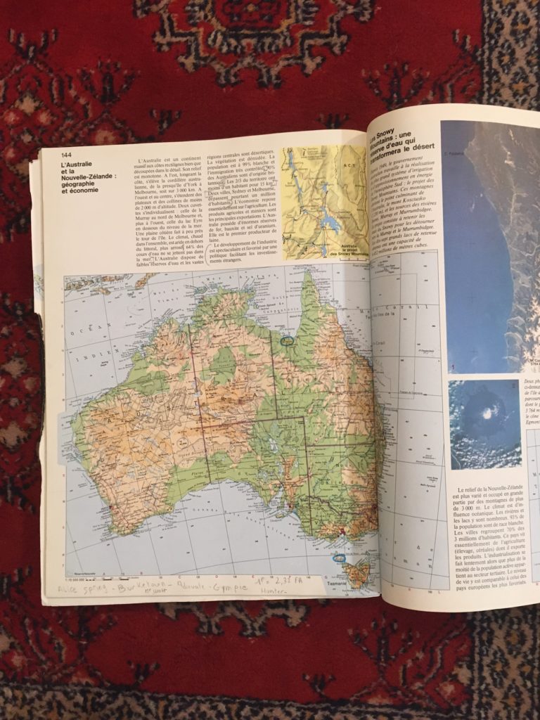Ce texte me parle beaucoup ; d’autres noms de lieux, d’autres atlas m’ont accompagnée, d’autres rêves, mais le même mécanisme à joué.
