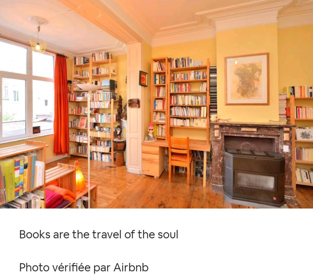 Quand, 20 ans plus tard, elle avait eu soudain l’impulsion d’aller étouffer une énième trahison amoureuse dans un ailleurs pas trop lointain, la pensée ancienne avait ressuscité : « Schaerbeek ». Aussitôt dit, aussitôt fait. Télécharger l’appli Airbnb, taper les lettres de la commune, merde j’ai oublié le « C », afficher les résultats en mode plan, s’aviser du gigantesque parc de Josaphat et, tout proche : « Appartement d’écrivain », écarquiller les yeux devant la photo au filtre orangé représentant des bibliothèques garnies, une cheminée, une table et une chaise parfaitement neutres, laisser son cœur bondir dans sa poitrine et cliquer sur : « réserver ».