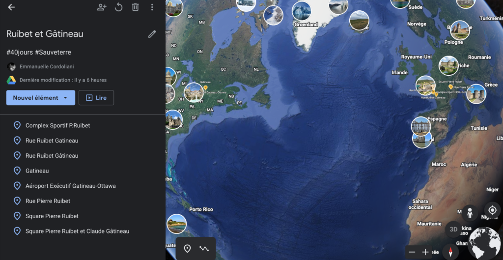 J’observe une drôle de constante : un stade et une patte d’oie. Parfois le nom d’un seul figure. Parfois, l’accent circonflexe manque à force de tirer son chapeau aux héros. Pour le Canada, j’imagine une histoire de poule ou l’œuf : peu de chance qu’on ait nommé une ville entière du nom d’un martyre du XXe siècle (alors qu’on ne se gêne pas avec Saint-Sébastien, ou Saint-Barth… autre temps, autres mœurs).