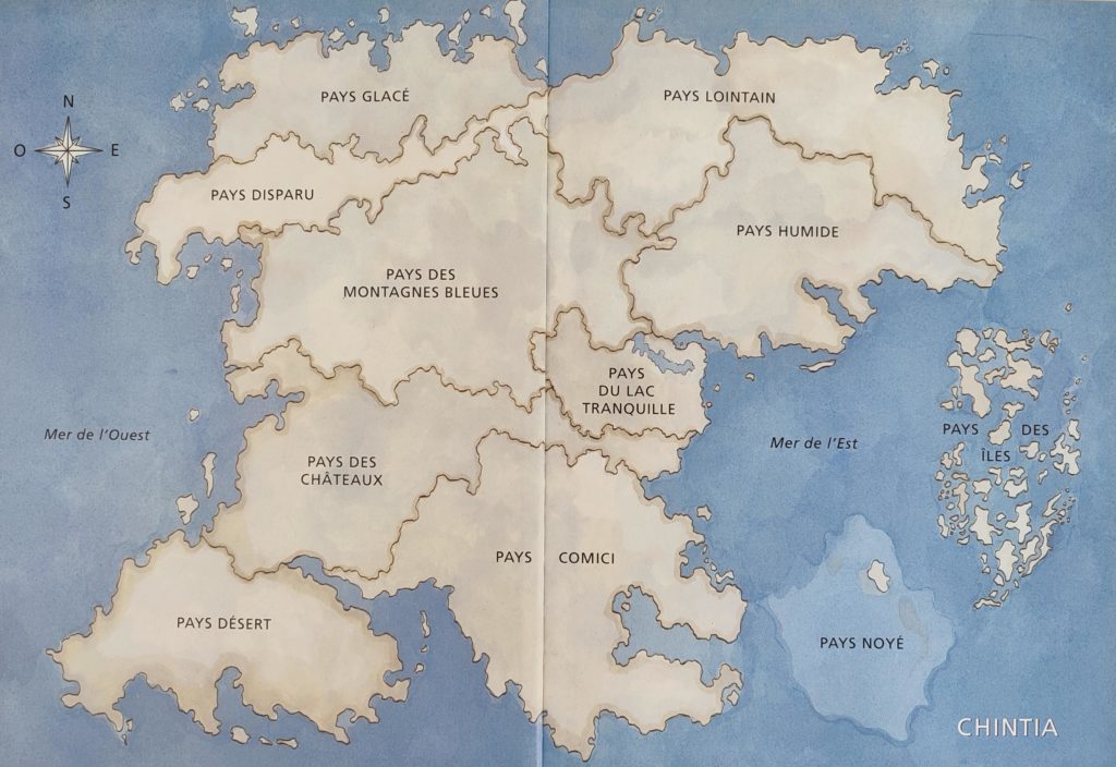 Atlas extraordinaire des îles imaginaires : Alca ou île des Pingouins et sa Côte des Ombres ; Ile d’Alcina, son Golfe profond et ses collines sauvages ; Anostus et ses rivières du Plaisir et de la Douleur ; le vaste royaume insulaire d’Antangil et son volcan-phare ; Azania, grande île de l’Océan Indien ; Babilary dans la mer de Chine orientale, gouvernée par des femmes ; Bensalem ; Cantahar ; Caspak et Oo-Oh ; Foollyk ou île des Poètes, archipel montagneux à proximité de la Terre de Feu, découverte par Magellan en 1520 ; Gondal et Gaaldine, îles du Pacifique, de part et d’autre de l’Equateur ; Her et son large bassin d’eau calme, île à situation incertaine ; Pays des Houyhnhnms, île des mers du Sud et ses deux mamelles montagneuse, découverte en 1711 par le capitaine Lemuel Gulliver ; le Pays Imaginaire, non localisé, sauf par les enfants quand ils rêvent ; Lilliput, au sud-ouest de Sumatra et du détroit de la Sonde, découverte en 1669 par le capitaine Lemuel Gulliver ; Marbotikin Dulda ou île de Fer dans l’océan Indien ; Mont analogue, île de la taille d’un continent dans le Pacifique sud, insituable, véritable défi lancé aux outils de navigation, avec le plus haut sommet de la planète, entre terre et ciel ; Iles de Nouvelle-Bretagne, trois îles de l’Océan Indien à huit cent milles à l’est du cap de Bonne-Espérance ; Oceana, île toute en collines de l’Atlantique Nord, située au sud de l’Irlande, à environ trois cents kilomètres à l’ouest de la côte de Cornouailles ; Ile des Orphelins, son journal de sable, sa péninsule des mécontents ; Quarll, île au large du Mexique, aux abords hostiles ; Quiso, petite île rocailleuse sur le fleuve Telthearna ; Ile de Robinson Crusoé ou Ile du Désespoir, quelquefois aussi appelée Speranza, île des empreintes à Crusoé et Vendredi ; Archipel de la Sagesse de quelques trois ou quatre cents îles, constellation de confettis dans le Pacifique Nord ; Ile des Sauts, archipel proche de l’Antarctique : Sautebas, Sautehaut, Sautepardessus, Sautatravers, Sautelong, Sautedessous, Sautecourt, Sautenbas, Sautenrond ; Ile de Storn et son unique port : Port-Breton ; Tamoe toute ronde et sa Montagne du Soleil et ses villes numérotées en chiffres romains ; Terremer, archipel d’une centaine d’îles ; Ile au Trésor hantée par le Capitaine Flint et Long John Silver ; Utopie, en forme de croissant ou de crabe, abritant une vaste mer intérieure, port naturel, protégé par un détroit délicat à traverser ; la Chintia composé de onze régions – le Pays glacé, le Pays lointain, le Pays disparu, le Pays humide, le Pays des Montagnes bleues, le Pays du lac tranquille, le Pays des Iles, le Pays des Châteaux, le Pays Comici, le Pays désert et le Pays noyé – bordées par la Mer de l’Est et la Mer de l’Ouest.