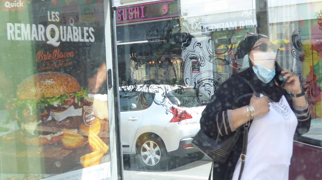 Station Rondelet. Ai perdu mes repères habituels. Quelque chose de l’organisation connue et reconnue s’est dissoute, remaniements de l’ensemble du quartier conduisant à une répartition différente des passages. La rue ne semble fréquentée que par les usagers du tram, et sans doute n’est-elle plus connue que pour cela. Centre de tri postal visible par le côté. Immeubles anciens offrant leur dos avec ou sans graffiti. D’après le plan, il suffit de longer la voie pour atteindre la gare en allant vers le nord-est – pas besoin de boussole, les rails indiquent la direction. C’est ce que j’ai dit à un jeune homme en l’y déposant suite à un arrivée tardive à l’aéroport à cause d’une tempête. Il venait participer à un congrès de botanique et avait un hôtel réservé dans ce quartier.