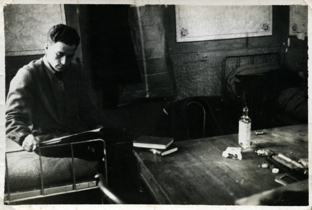 - A tout le moins, elles montrent des fragments de réalité. Elles le montrent dans des moments de sa vie. Ce sont des photos en noir et blanc bordées d’une marge blanche. Certaines dentelées. D’autres pas. Conservées encore aujourd’hui dans un portefeuille en simili cuir noir. On le voit en habit militaire puis en civil. Au pied de son avion ou dans le cockpit au poste de pilotage. On le voit en train de lire dans sa chambrée. On le voit faisant du ski avec des camarades. On le voit sérieux. On le voit sourire. On le voit oser un regard amoureux vers celle qui va devenir sa femme. On le voit dans toutes sortes de situations. Le visage radieux. Le visage blême. Les traits tirés. On devine sur son visage les traces de la maladie. On les redoute.