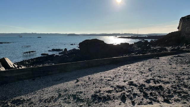 Tout immobile donc tout autour du trépied calé dans les cailloux appareil allumé et luminosité baissée au maximum. Tout immobile donc les nuages comme un voile qui diffuse et tamise le manque de lumière et étale le grave dans un sombre uniforme voire un obscur très clair. Tout immobile donc là tout au bord de l’eau à marée descendante de faible coefficient. Dans la fenêtre de l’écran de l’appareil photo la ligne de l’horizon descend avec la mer quand on ne la regarde pas puisque la mer se fige quand on l’examine trop, elle ne monte ni ne descend figée par le regard qu’on pose sur ses ondes, tout immobile donc dans la fenêtre du boîtier. Tout immobile donc la lumière est revenue avec l’éclaircie sans qu’on ne la voie revenir. Le jour baisse tranquillement et les réglages du boîtier vont devoir s’adapter mais à peine pour un trait de la molette crantée. Rester immobile donc derrière le trépied assise et repliée les genoux dans les bras. Rien ne presse. Attendre la lumière si elle veut bien venir. Sinon ce sera tant pis ce sera un autre jour. Rester immobile donc à regarder la lumière descendre comme une main douce tout le long de la courbe du dos qui déploierait les ombres. Les ombres sur les cailloux se coulent dans le terrain dans les creux et les bosses et aussi les trous d’eau pour des reflets parfois. Mouvements imperceptibles tout immobile donc. Alors fermer les yeux. Y revenir seulement après un long moment pour voir une différence de lumière et puis d’eau en longueur en largeur Tout immobile donc puisque la mer est calme. Pas d’écume aux cailloux qui pointent leur sommet puis se font écueils et récifs et même bientôt îles quand ils se joignent à d’autres reliés par des chemins de sables ou de vase ou bien d’autres cailloux. Tout immobile donc. Détacher les mains des genoux et poser la main droite sur les cailloux du sol pour pivoter doucement et déplier les jambes pour qu’elles soutiennent le corps, que les pieds soient l’assise et non plus le séant. Debout poser l’œil dans le viseur et tourner juste d’un cran la molette de droite pour adapter le temps de pose à la lumière qui revient avant de s’en aller doucement pour laisser venir la nuit. Tout immobile donc juste reculer le buste et laisser les bras rejoindre le long du corps soleil couchant dans le dos pour que l’ombre s’allonge et s’allonge et s’allonge. Tout immobile donc pour que l’ombre s’allonge jusqu’au loin de la mer et jusqu’au bruit des vagues.