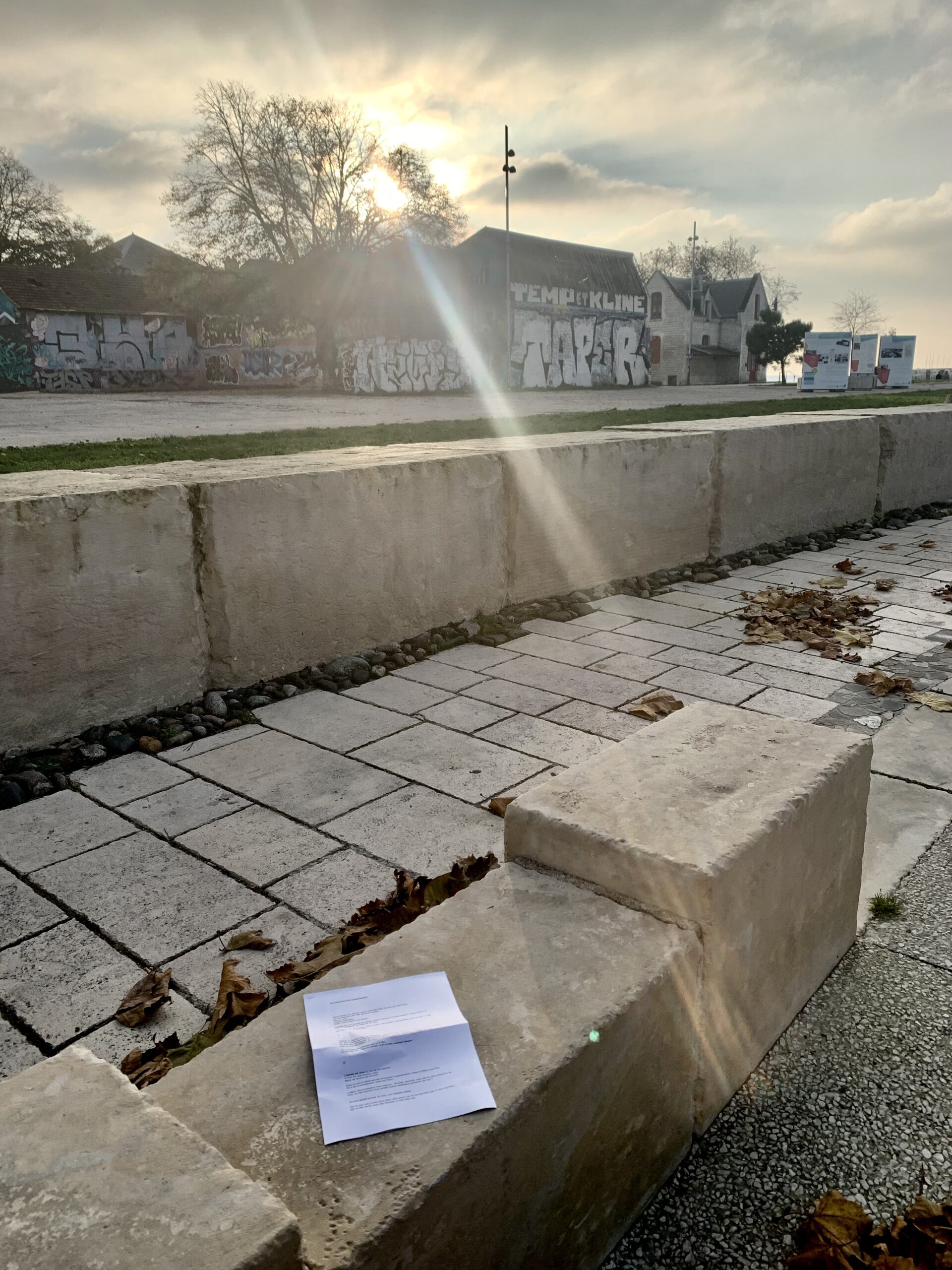 Il pleut des ronds dans une flaque où se noient des feuilles de platane parfaites, plus pour longtemps. L’eau accélère la décomposition de ce qui fut bruissement d’arbre, ombre et maison pour étourneaux.