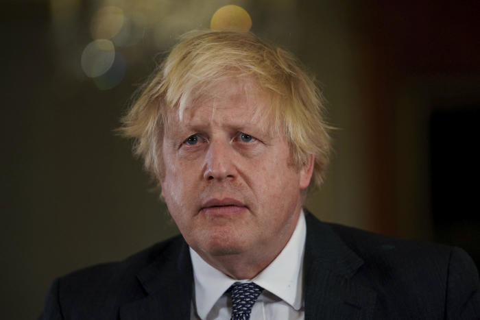 DOSSIER – Le Premier ministre britannique Boris Johnson enregistre une adresse à la nation à Downing Street, Londres, pour faire le point sur le programme de vaccination de rappel, dimanche 12 décembre 2021. Les législateurs devraient publier un rapport tant attendu jeudi 12 juin Le 15 février 2023, si l'ancien Premier ministre britannique Boris Johnson a induit le Parlement en erreur au sujet des fêtes bafouant le verrouillage du COVID dans son bureau de Downing Street. (Kirsty O'Connor, Piscine via AP, Fichier)