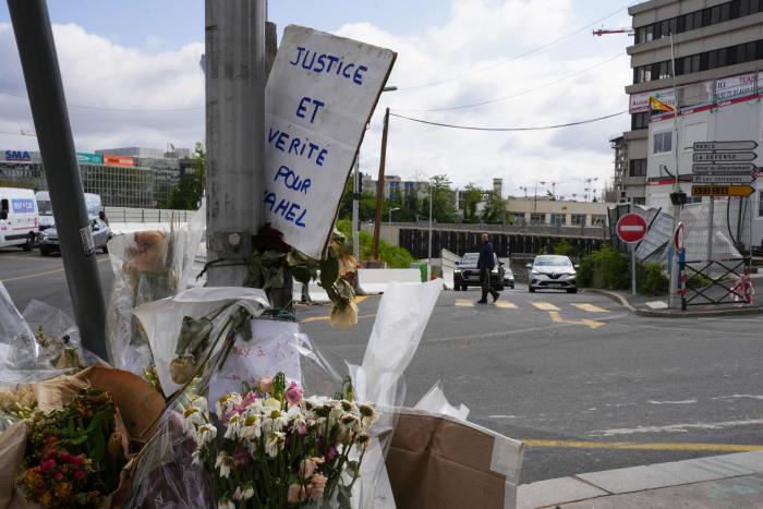 Un message qui dit "Justice et vérité pour Nahel" est vu parmi d'autres messages et fleurs apportés par des personnes pour l'adolescent de 17 ans tué Nahel M. sur le site où il a été abattu par la police, dans la banlieue parisienne de Nanterre , le 5 juillet 2023. Les affrontements entre la police française et les émeutiers se sont de nouveau calmés du jour au lendemain, a déclaré le gouvernement le 5 juillet 2023, huit jours après que le meurtre d'un adolescent par la police a déclenché la pire violence urbaine depuis des années. La police est restée très mobilisée avec 45 000 agents patrouillant dans les rues, a indiqué le ministère de l'Intérieur. (Photo de Zakaria ABDELKAFI / AFP)