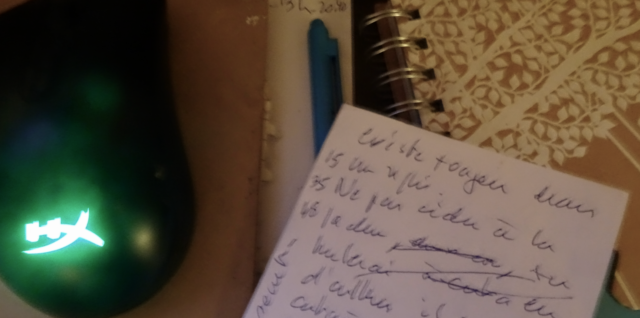 #40 Lire un livre par jour, ne pas hésiter à en lire plusieurs en parallèle, de styles différents, essais et romans, poésie et journaux.Au moment de chercher un mot pour le remplacer par un autre, ouvrir une page au hasard dans les livres de sa bibliothèque, lire la page en question et revenir aussi vite vers son texte pour changer Continuer la lecturecarnets individuels | Pierre Ménard