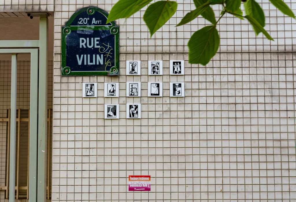 La rue des Couronnes (nous la remontons), la rue Vilin (ce qu’il en reste), la rue des Envierges, la rue Piat, la rue Julien-Lacroix, la rue Jouye-Rouve, les voitures, les klaxons, les feux tricolores, le trottoir exigu et glissant (il bruine), les piétons pressés, les tags bigarrés, l’affiche représentant un homme avec un chat sur l’épaule (il sourit), la plaque eau et gaz à tous les étages, la haie de caroubiers séparant les deux voies de la chaussée, le portillon (nous le poussons), l’allée pavée de pierres irrégulières (nous l’empruntons), les bosquets, les pelouses, le parterre de rosiers, l’escalier de béton (nous montons), sa rampe, les chênes, hêtres, tilleuls, marronniers, noyers, tulipiers de Virginie, arbres de Judée, orangers du Mexique, frênes d’Amérique, savonniers, pommiers, catalpas, sophoras, arbres à encens, cyprès chauves, arbres aux 40 écus et autres essences, la fontaine, le bassin, les senteurs de terres humides, l’escalier double (nous le gravissons), ses rampes, les réverbères, le belvédère (nous contemplons), la vue, la ville, le vertige, l’appréhension, le doute, la mémoire, l’instant.