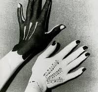 J’ai regardé leurs mains icônes de l’art contemporain, présences esthétiques des formes. Les mains liées de Dora Maar crèvent la toile dans La Femme qui pleure, pleure de détresse face aux ravages de la guerre, de la perte de son amour, parce que la famine persiste dans toute l’Espagne ou bien est-ce Dora Maar, la pleureuse obsessionnelle qui est la seule inspiratrice du cubisme forcené de son amant dont l’art est sa destruction. Une main blanche fardée, décorée, en miroir l’autre main détachée, ongles noirs sur mains blanches, les mains de Dora Maar sublimées, l’art en dialogues, regard enivrant sur le surréalisme. Il s’invite dans la haute couture. Leurs mains, celles du peintre, de la muse, celles du photographe, celles de la créatrice en osmose unies par leur inspiration picturale, architecturale, novatrice, esthétique décalée. Il dessine, peint, il photographie, il illumine, dispose, elle crée, sublime un tailleur en tweed noir, coupe architecturale structurée, épaules marquées, taille cintrée, ajustée, un tailleur comme une sculpture et la touche finale, de longs gants en nappa noir aux ongles rouges en peau de serpent, une œuvre d’art surréaliste. Dans l’atelier de haute couture, le talent des petites mains s’active.Quel photographe n’a pas rêvé d’être Man Ray.