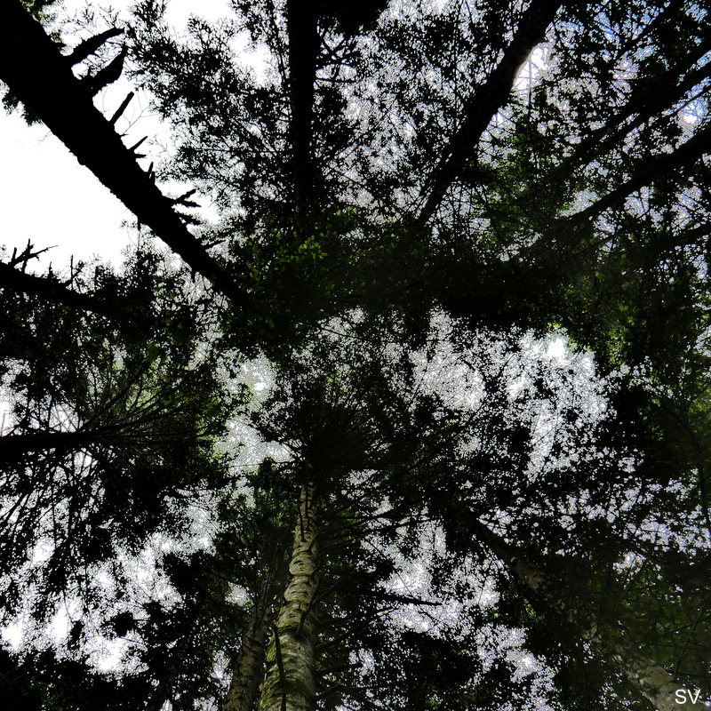 Les troncs horizontaux étalés sur le sol et happés par les mousses, longs corps chevelus où s’épaissit l’oubli de ce qui fut, des vivants morts encore un peu vivants qui tapissent la terre. Union d’où naissent des frôlements de formes, des sceaux de songes, et de longs suaires d’ombres. Tentacules fuyantes sur une houle de mousse.