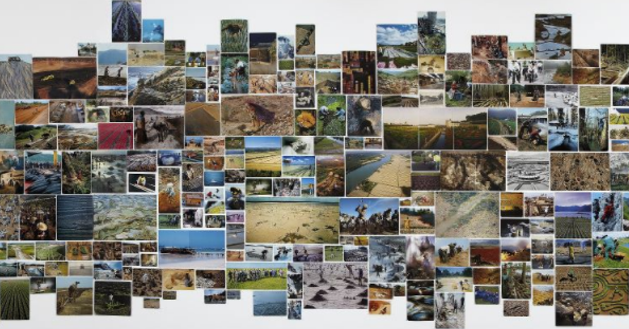 « Un premier clin d’oeil vers ton atelier avec une de mes principales pièces : Le mur des sols. Archives personnelles réunies en 20 années de recherches. 21 groupes de l’ensemble des archives : les sols archéologiques, les sols de morts, les sols d’arts, les sols de paysages, les sols de cartes et plans, les sols de pieds, les sols de convivialité, les sols de planètes, les sols de catastrophes, les sols pollués, les sols de cimetières, les sols religieux et sacrés, les sols de balayage, les sols de routes et voies, les sols de foules, les sols de sports, les sols de guerres, les sols de tapis, les sols habités, les sols de travails, les sols de loisirs.»