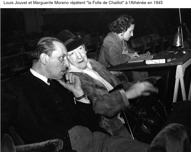 (le jour suivant accoucha d’un L267 – rang 14) ici dans la vie courante un acteur et une actrice (à l’arrière plan, ce ne peut être Charlotte Delbo (elle était alors en convalescence si j’ai bien compris) qui, cependant, était avant guerre et déportation, l’assistante de Jouvet)