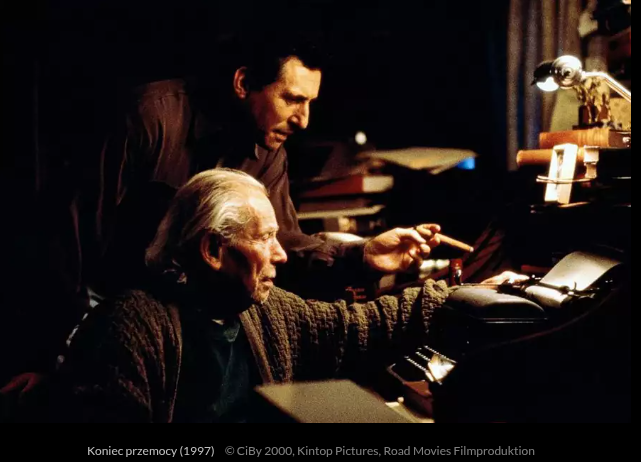 (Sam Fuller qui incarne un Louis Bering dans La fin de la violence (Wim Wenders, 1997) derrière lui Gabriel qui interprète son fils Ray) (c’est tout moi)