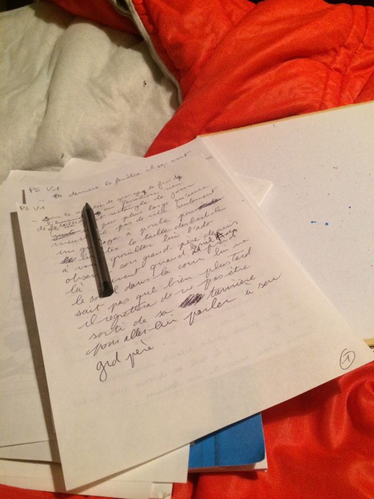 Attirée par cette belle couleur rouge orangée… Ce lieu familier que le lit pour écrire… ou tout endroit qui y ressemble.