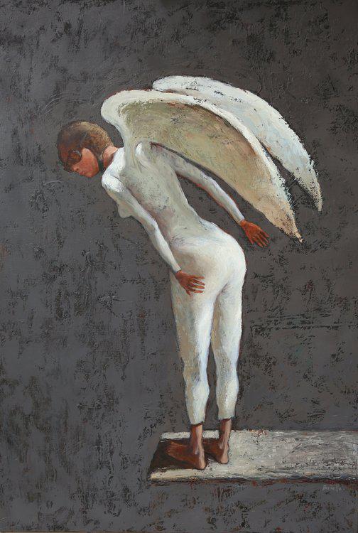 Par association d’idée, la lecture de vos commentaires m’a ramenée à cette image trouvée sur internet et appréciée par plusieurs commentateurs. Je me suis sentie mal à l’aise d’avoir barboté ce tableau sans le relier à son auteur. Après recherche dans mon historique, j’ai donc retrouvé les références que je vous livre enfin : Le saut de l’ange, 2016, Bertrand Bataille.
