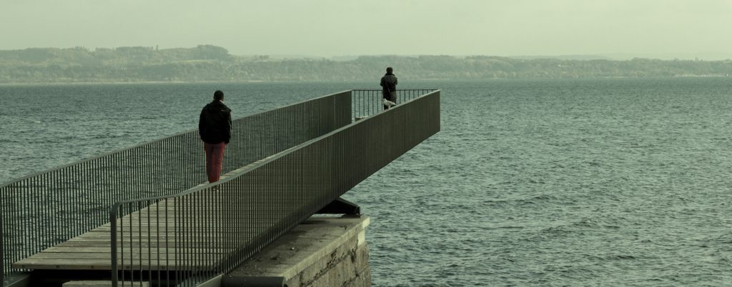 1 un Calder pas plus haut que ma tête, tirage réduit de celui qui se trouvait aux pieds des tours à New York (1983) 3 de l’eau enfermée qu’on pourrait prendre pour la mer 5 deux enfants après un pigeon dans l’allée qui longe le lac comme deux enfants après un pigeon dans l’allée des Maillol aux tuileries 6 une passerelle plongeoir (bras de grue pour voir au dessus de l’eau) 6bis Et regarder les montagnes fondre dans l’eau 6ter l’homme de dos croire qu’il va sauter tout habillé 7 L’enchantement cinématographique du cadre et de la lumière 7bis — vous tournez quoi ? — La mort d’une mouette 7ter Jean Luc : quand il filme le vent. Quand il filme l’eau. Quand il filme l’évanouissement de l’homme au bord du lac 9 des manèges : auto-tamponneuses, carrousel, pêche aux canards. 9bis on vend des pommes d’amour et des frites 11 on vend des chaussures très chics pour marcher 9bis Ici on marche 11ter on grimpe 13 ici on suspend son manteau à une patère à l’entrée du musée. Il n’y a pas de vestiaire cependant que comme ailleurs on chie 15 Jusqu’au printemps on skie — ce qui ne se fait pas partout. 17 dans les rues on croise des groupes de gens avec des chiens en laisse et des personnes à brassard rouges 17 bis on dresse les chiens avec des maitres chiens 17 ter les chiens s’ils sont seuls, ce qui n’arrive probablement pas, traversent dans les clous qui, comme souvent ailleurs, sont des bandes blanches soudées à chaud au bitume 17 quater on ne traverse pas en dehors du passage même si l’on est en retard : ni homme ni chien (on n’est pas en retard) 19 on ne crache pas par terre. 21 on se soigne aux herbes des montages 21bis on s’appelle Heidi et parfois — c’est très rare— , Edelweiss 23 ici il y a un funiculaire comme à Montmartre, on n’y vend cependant pas de sacré cœur 23bis un distributeur distribue des boissons gazeuses et du chocolat chaud. 25 En haut la lumière fait comme sur le dos d’une carpe des miroitements froids 27 deux hommes parlent, ils ont un fort accent entre montagne et lac. on comprend qu’ils parlent des étrangers 27bis il y a des étrangers qui… 27ter des étrangers que… 27quater « faudrait quand même voir à nettoyer tout ça » 29 là bas ils ne sourient pas à tout le monde ( ici non plus direz-vous) 29bis ils vont plus vite qu’on ne croit 27ter le funiculaire descend au rythme d’un funiculaire et on ne contrôle pas ton billet car tu as pris un billet 31 cet hôtel sur pilotis ultra moderne bois sur verre, nature et transparence. Chambres studios de luxe. Cet hôtel tu l’avais vu dans un film. À la fin la chambre explosait 33 Tu te promènes toute nue dans cet hôtel qui donne sur le lac et tu penses à la mort. 33bis c’est le théâtre qui paye la chambre où tu vas certainement mourir 33ter pour rejoindre le théâtre tu dois marcher trente minutes 35 la nuit tombe vite 37 « la vie elle a comme pas passé » dis le vieil acteur sur la scène 39 tu manges un chocolat et tu comprends que tu n’es pas encore morte 41 tu cherches un coucou partout 43 finalement tu t’endors